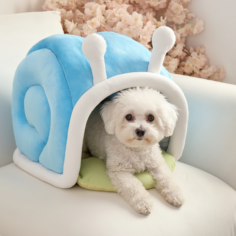 Its charming snail design also makes it a decorative piece you’ll love having in your home — blending perfectly into bedrooms, living rooms, or pet play areas. Easy to move, lightweight, and irresistibly cute, this bed gives your Bichon a warm retreat wherever you place it.